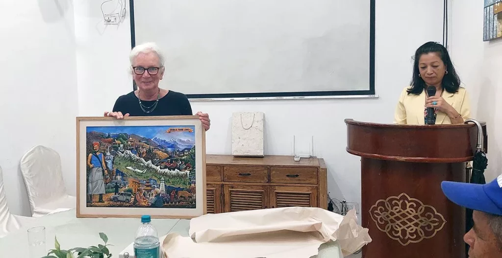 In her response, Dr. Gillian expressed heartfelt thanks and reflected on the shared achievements and partnerships that have shaped BNMT’s journey. As a symbol of appreciation, she was presented with a special artwork commemorating her memorable 2005 trek — a fitting tribute to her commitment, passion, and adventurous spirit that continue to inspire both BNMT UK and BNMT Nepal.
